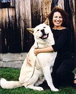 Lesléa with Nico, an Akita who looks very much like Hachiko.