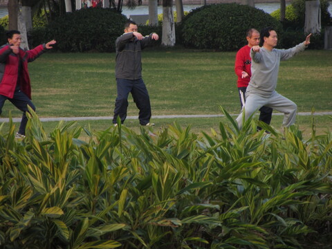 On these walks I get a great deal of enjoyment watching people as they watch me. Today I saw a woman jogging in a miniskirt, running shoes and an angora sweater. And do you know what? She looked great. If I was jogging in an angora sweater I would look hot and red and sweaty. I saw quite few self-slapping men wearing business clothes and dress shoes on their walk. Very few people wear special exercise clothes. I like to think it’s because exercise is a more integrated part of life here; it doesn’t exist separate from the daily routine. People exercise on their lunch breaks and tea breaks. Pregnant women come out in droves in the evening to walk. Grandparents take their grandchildren out with them to walk or ride bikes. And you can do any silly exercise related thing you like in public. Self slapping? Yes. Windmill your arms while you run? Absolutely. March backwards wearing jellies and pajamas? Of course. I could do Pheobe’s silly run from Friends and people wouldn’t bat an eye. They’d stare because I’m a tall, very white redhead and I stand out where ever I go in China, but not because I was doing my own brand of exercise.